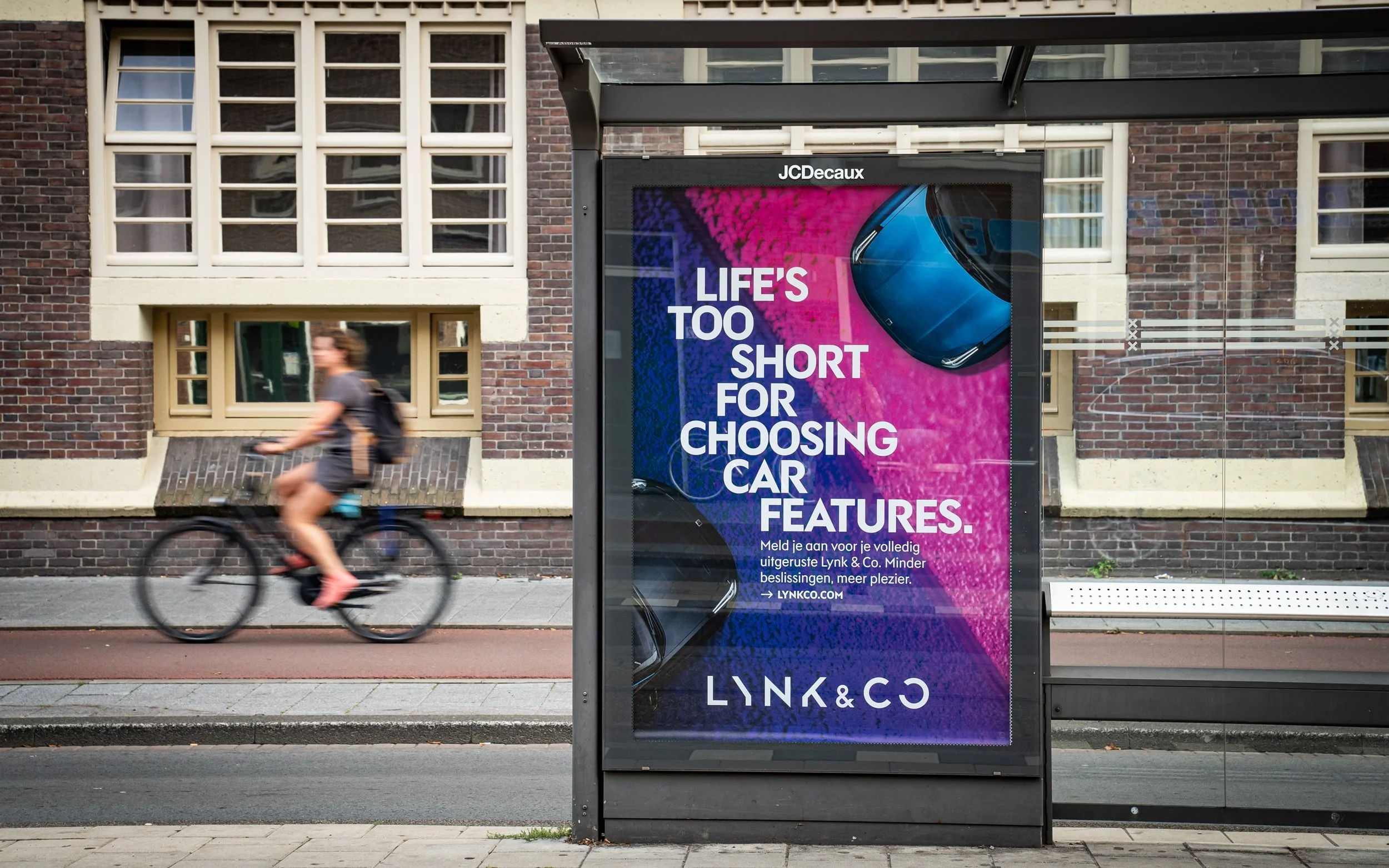 The concept was launched through a big outdoor campaign in Lynk & Co’s European markets in autumn 2022. A key pillar was to localize it across the seven countries Lynk & Co operates in: Sweden, Germany, the Netherlands, Belgium, France, Spain, and Italy. Together with local copywriters, we balanced the international voice with local needs by combining English and other languages.